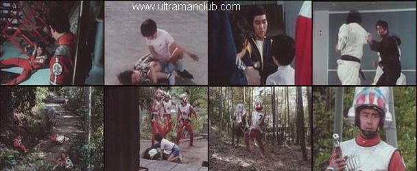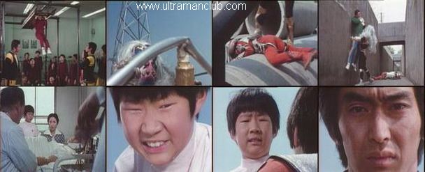 在凤源的鼓励下,一郎终于重新振作起来,向30次发起挑战。凤源看着一郎,从心底为他加油:加油啊,一郎,你是男人。男人总是要孤独战斗,并战胜自我。 一郎的力气越来越小,终于掉了下来。凤源伸出手臂准备接住一郎,在接住一郎的那一刹那,凤源想到了对付怪兽的方法:我知道了,摔下来,把宇宙人摔下来。