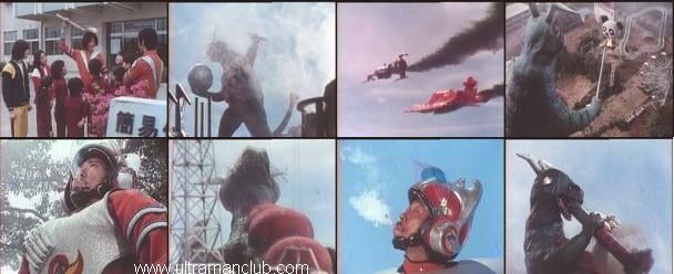 凤源和佐藤回到体育俱乐部。就在佐藤向小朋友们讲述作战经历的时候,怪兽再次出现了。怪兽举起油桶向MAC战斗机抛去,爆炸击毁了飞机。接着,又去捅破一个一个的气球,模仿佐藤队员的举动。