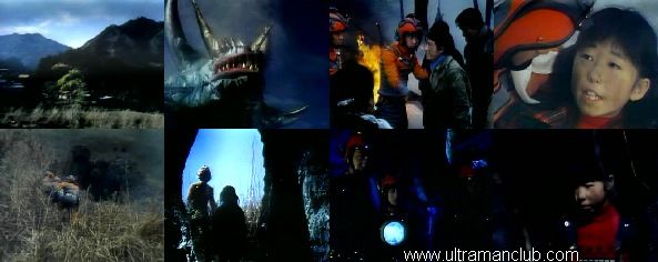 从对讲机里听到了吉村和典子处境不妙,大家都很担心。龙队长看到不远处有个村庄,便过去询问了有关超兽达达拉霍斯,村民们告诉大家,传说这个村子所在的 盆地就是超兽用脚踩出来的,现在大家仍然在神龛祭祀着它。北斗也说了自己知道的超兽的事,“小时侯听传说,达达拉霍斯是一个巨大的恶魔,是它一夜之间造出了富士山。”