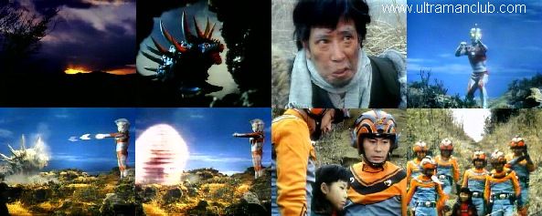 来到地面,大家发现了爷爷的踪迹,并拦住了他。但爷爷一心要报仇,一意孤行的要超兽继续攻击。队员们只能奋力招架,应接不暇。而小百合想招回庄兵卫,不 料,狂暴的庄兵卫已经辨别不出小百合了,小百合非常危险。爷爷看到,想吹长笛来抚平庄兵卫的情绪,但不小心摔倒,长笛掉到了山崖下。眼看超兽就要攻击小百 合了,爷爷马上上前一把推开小百合,自己却被超兽口中喷出的溶解液打到,瞬间化为乌有,尸骨无存。小百合见此,声嘶力竭的呼唤着爷爷,但人死不能复生,更 要命的是,超兽又要开始攻击小百合了。幸好,北斗这时及时赶到小百合身边,抱起小百合后就变成了艾斯,战斗开始!