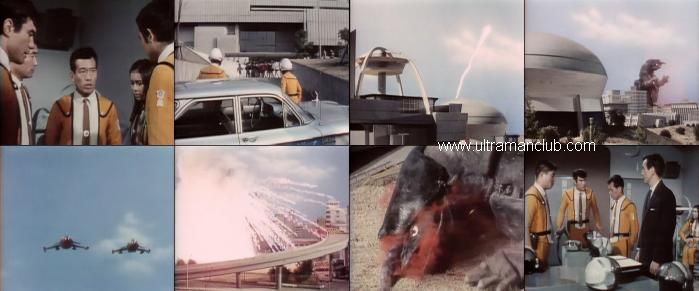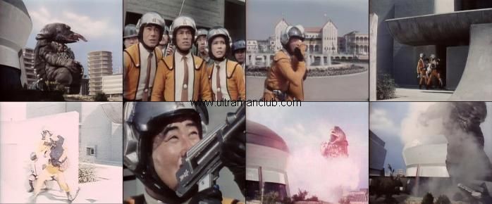 但是,故事却没有在此终结。就在这天,当秋子和岚再次巡逻到文化宫附近时,神秘光点又出现在他们的视线中。不等秋子联系总部,光点却迷一般地消失了!但紧接着,在光点消失的空域下方,一股浓重的红色烟雾缓缓升起。随着那令人耳熟能详的脚步声和吼叫声,一个似曾相识的巨大身影在渐渐消散的浓雾中显现出来——怪兽,不论何时,它那“亲切的”身影总会出现在几乎每一处灾害与怪异事件的现场……当然,这次也不例外。面对着突然现身的怪兽和其发出的强达600万瓦的闪光,岚一面以射线炮拖延时间,一面联络了队长的空中支援。在喷气战机的轮番发威下,怪兽似乎开始有些体力不支,当又一枚炸弹在它身上爆炸后,怪兽轰然地倒在了地上。