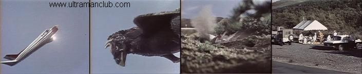 当喷气机飞抵现场时,队长发现山间的公路上一股浓烟升起,那是破坏的汽车残骸正在熊熊燃烧,随即翼首龙出现在视线当中。“威托”向怪兽俯冲投弹,而怪兽受到打击后便立刻直飞天空。在空中,怪兽异常地灵活,起先队长的几次射击都被它躲了过去。随后早田和岚驾驶的战机贴近攻击,总算有几发炮弹命中,中弹后的怪兽向地面坠去。然而没等二人互相庆祝,怪兽又突然杀了一个回马枪,反过来向早田他们的座机扑去。结果喷气机躲闪不及被撞,最后强行着陆在地面上,岚没有大碍但是早田却手臂负伤。