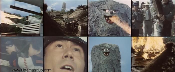 紧接着降落的科特队队员们,在丛林中仔细的搜索着。猛然间,在火箭坠毁地点处,一头怪兽的身躯突然耸立起来,见此情况队长立刻下达了攻击命令。但有点奇怪的是,任凭炮弹在四周开花,怪兽只是不停地躲避,偶尔喷出火焰来吓阻科特队的追击。当然,正在攻击兴头上的队员谁也顾不上注意这点。这时,秋子队员突然发现阿兰特派员的脸色有些不对劲,只见他望着怪兽的身影大惊失色,嘴里不由地说出了“Jamila”这个含糊不清的名字。