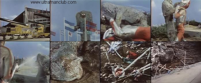 科特队推测出改变Jamila形态的是一个无水的星球,水对于他来说就如强酸对人一样致命。因此科特队架起了高射炮,使用人工降雨弹发起攻击。随着阵阵雨水从天降临,Jamila果然有些吃不住了,他不由地蜷起了身子。然而,眼看会议中心就在不远之处,心中的复仇火焰使其哪怕剩下最后一口气也要拼出去。看着为了复仇而不顾一切的他,没有时间再多考虑是与非的早田迅速变身为奥特曼,一下撞开了正要冲砸会议中心的Jamila。几番拳脚上的较量后,奥特曼使出了对Jamila致命的一招:从其手掌中喷射出了阵阵高压水流。在“水弹”的攻击下,Jamila终于支撑不住了,他轰地倒在了泥水当中,在混杂着建筑物瓦砾的泥水和会场各个国旗的泥水当中,痛苦地惨叫着、挣扎着,咽下了自己最后的一口气。
