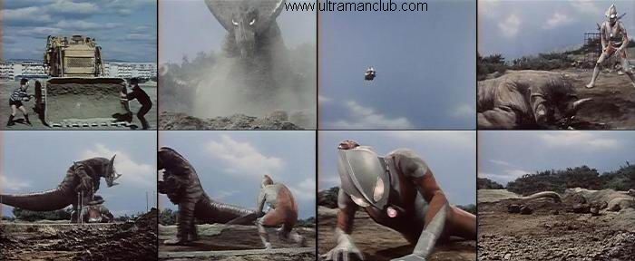 从当初的惊吓中回过神来的孩子们早把当初对怪兽的兴趣抛到脑后,开始飞快地逃离这个危险地带,可是怪兽已经是近在咫尺了!绝望之刻,オサム忽然向着天空大声呼喊着奥特曼。这时,奇迹发生了——一个矫健的银色身躯转眼间从空中一跃而下——没有任何的征兆,奥特曼竟然如此神速地出现在了事发地点,与胡作非为的哥莫拉展开激烈的搏斗。只不过这次,怪兽的强大实在是出乎想象。凭着不输于奥特曼的肌肉和一股蛮力,哥莫拉在这场肉搏斗战中逐渐占据了上风,其像钢鞭一样强劲的尾巴将奥特曼一次又一次地打趴在地。终于,奥特曼再也坚持不住了……取得这场战斗胜利的哥莫拉从奥特曼的身体上得意洋洋地走了过去。等到奥特曼缓过气来,准备发射特殊光线的时候,哥莫拉早已经又钻入了地下。