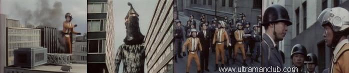 没有找到任何的线索,回到本部后队队员们的心中很是沮丧和疑惑。突然,电话铃声响起,警方传来的消息竟然是秋子在市中心被发现了!可是......当队长率领大家赶到现场时,却被眼前的景象惊得目瞪口呆——只见伴随着沉重的脚步声,有着几十米高身材的秋子出现在了大家面前——天啊!这倒底是秋子,还是怪兽?!不甘心的大家试着向秋子高声呼喊,可是任凭队员们怎么问,秋子却是一点反应都没有。“真是可怕,完全丧失了语言和记忆,就像一台机器一样。”岩本博士不禁说到,“队长,我在想,把秋子队员变成这种可怕的样子,一定有人妄图对我科特队发起挑战!”