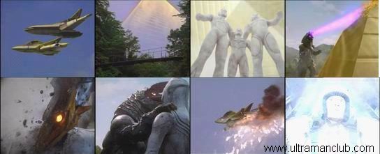 在指挥室里,队员们正在坚村博士的带领下研究前一天坠落的陨石。当陨石被切开后,发现这不是天然的陨石,而是制造出来的。在陨石中隐藏了一个时光机器,由它产生的影象是地球星警备团团长幽怜,她好象在说些什么。掘井队员用声音翻译机翻译出幽怜所要传达的意思:“这个时光机器到达地球,就意味着地球将相继发生很多巨变。最初的征兆就是使大地动摇的怪兽哥尔赞和使天空崩裂的怪兽美尔巴复活。能够保护地球免受异变之灾的只有金字塔里的巨人。那巨人曾经是地球的保护神,他把用来战斗的身体隐藏在巨大的金字塔中,然后还原成本来的光的形态回到自己的故乡去了!而你们的任务就是让巨人复苏,让巨人复苏的方法只有一个,那就是让……”说到这里,因杂音,无法听见下文了。
