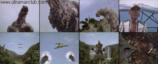 这时哥尔赞出现在了金字塔旁了,它用光线破坏了金字塔,并和美尔巴一起破坏了其中2座巨人石像。当哥尔赞正准备破坏最后的石像时,大古驾驶飞机奋不顾身的冲上去发射了信号弹,试图阻止怪兽的破坏,可根本没用。大古的飞机被击中了,而弹出装置出了故障,大古无法跳伞了。他的飞机坠落了,发生了爆炸。